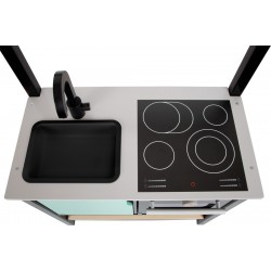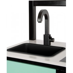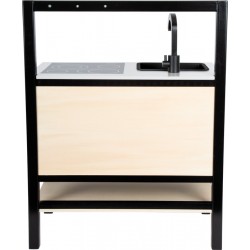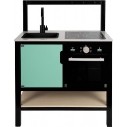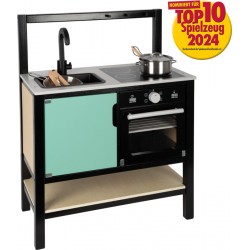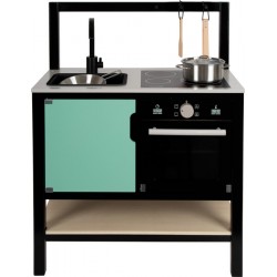 Väikestele tippkokkadele mõeldud mänguköökide rohkus! Moodsa moodulköögi ilme ja stiilse musta raamiga disain teevad sellest puidust mänguköögist tõelise pilgupüüdja. Nutikad detailid muudavad mänguväärtuse oluliseks: liikuv veekraan segamisnupuga, eemaldatav plastmassist kraanikauss, ahi eemaldatava ahjuplaadiga, klõpsnupud ja seadmete illustratsioonid loovad noortele ja pürgivatele kokkadele eriti autentse köögikogemuse. Komplektis on pann, pott kaanega, spaatel ja grilltangid – see köök on mänguks valmis!