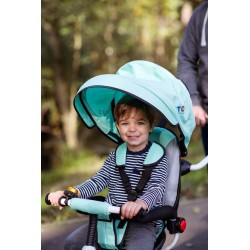 eemaldatav turvakaar, tagaküljel olev korv mänguasjade ja tarvikute jaoks, reguleeritava kõrgusega rool, poroloonrattad. Mõlemal tagarattal on eraldi pidurid. Kokkupandav konstruktsioon võimaldab pagasiruumis hõlpsat transportimist.