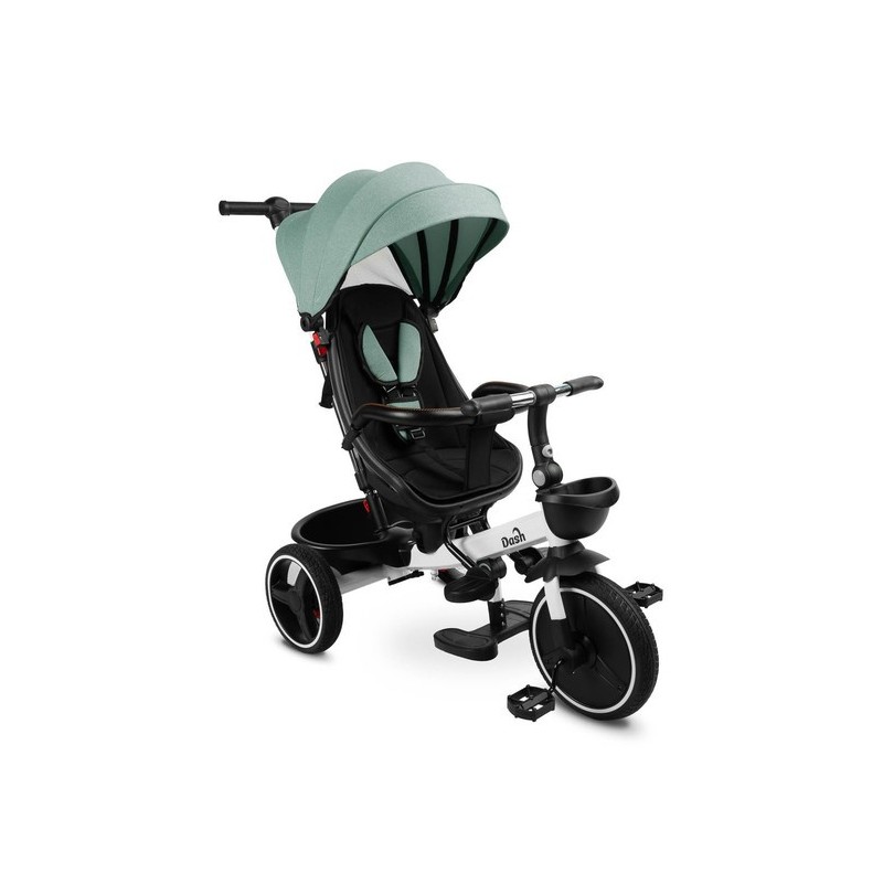 Kolmerattaline Dash on suurepärane alternatiiv lapsevankrile. Seda saab kasutada jalgrattana, millega laps saab üksi sõita, ja katusega lapsevankrina, milles last saab transportida nii ette- kui ka seljaga sõidusuunas. Jalgratta ees ja taga on korvid, mis võimaldavad teil vedada väiksemaid esemeid. Jalgrattal on kaks jalatuge: need ulatuvad ratta raamilt välja ja on kinnitatud istme külge. Mõlemad jalatuge on lapse mugavuse tagamiseks reguleeritavad. Jalgratta tagarattad on varustatud piduritega, mis võimaldab teil rattalt ohutult lahkuda, ilma et peaksite muretsema selle äramineku pärast.