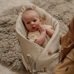 Valmistatud kõrgeima kvaliteediga puuvillast, täidetud kahe kihi täidisega. Esimene kiht on tavaline ümbrikutäidis, mis on piisavalt tugev, et beebi esimestest eluhetkedest peale kindlalt käes hoida. Teine kiht on palju õhem ja kohevam.