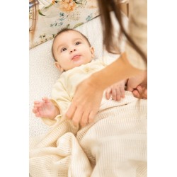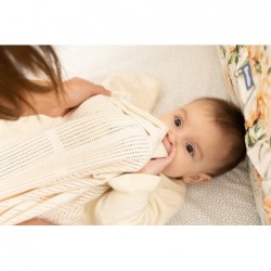 LULU ažuurne tekk on valmistatud kvaliteetsest 100% puuvillasest kangast. Selle ainulaadne kudumine tagab hea õhuringluse. Tekk töötab võrevoodis ja kärus, muutes kevadsuvised jalutuskäigud meeldivamaks. Tänu oma ainulaadsele välimusele võib see olla osa vintage või boho layette'ist.