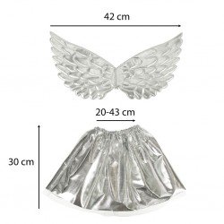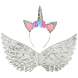 Karnevalikostüüm igale lapsele, kes unistab saada ükssarvikuks, kasvõi üheks päevaks. Komplekti kuulub kummipaelaga seelik, tiivad ning kõrvade ja sarvega peapael. Kõik kostüümi osad on hõbedased . Tänu universaalsele suurusele sobib kostüüm igas vanuses lastele.