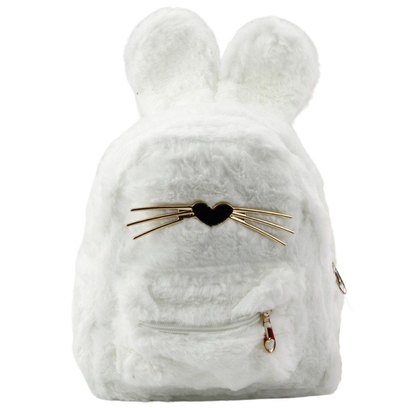 Laste valge seljakott jänesekõrvade ja dekoratiivsete vurrudega