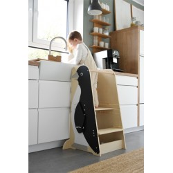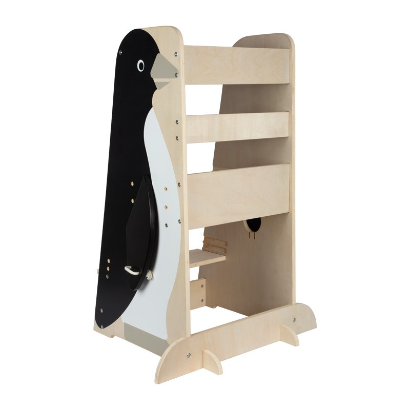 Ava värav uutele avastustele! Selle armastavalt kujundatud ja lapsesõbraliku pingviiniõppetorniga saavad lapsed turvaliselt ja mugavalt täiskasvanute kõrgusele tõusta ning aktiivselt osaleda igapäevastes tegevustes, näiteks köögis. Platvormi, kõrgust reguleeritava astme ja torni ümber kulgeva käsipuuga varustatud õppetorn pakub rohkelt turvalisust ja annab lastele juurdepääsu igapäevastele tegevustele tõstetud platvormil ilma kukkumise või ümbermineku ohuta. Lisafunktsioonidega, nagu liigutatavad pingviinitiivad ja praktiline koht pesulappide, potialuste või köögiriistade jaoks tiibade all, on see õppetorn mitte ainult funktsionaalne, vaid ka väga mugav pilgupüüdja ja igapäevane abiline.