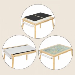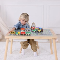 Puidust tegevuslaud on ideaalne mänguruum väikesele kunstnikule ja maadeavastajale! Tänu nutikale disainile saavad lapsed kriidiga tahvlile joonistada, linnakaardil autodega mängida, paberirullile joonistusi teha või lauaplaati vabalt klotside ladumiseks ja loominguliseks mänguks kasutada. Selle täispuidust konstruktsioon ja ergonoomilised mõõtmed muudavad laua ideaalselt sobivaks noorte eelkooliealiste laste vajadustele. See mööbliese mitte ainult ei paku tundideks kaasahaaravat mängu, vaid soodustab ka kujutlusvõime ja käeliste oskuste arengut.