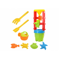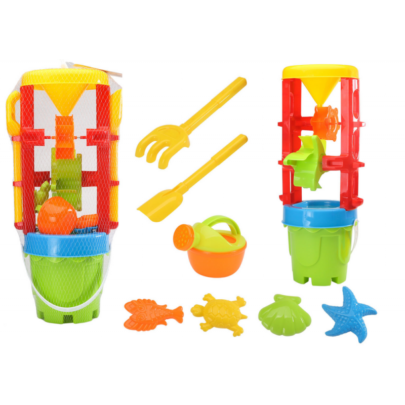 Liivamänguasjade komplekt, suur veski, ämber, värvilised vormid Liivamänguasjade komplekt on ideaalne pakkumine lastele, kes armastavad loovat õues mängida. Komplekti põhielemendiks on suur liivaveski, mis on melu keskpunkt. Veski ühel küljel on sõel, mis võimaldab sõeluda liiva ja eemaldada suuremaid kivikesi või karpe ning teisel pool lehter, mis hõlbustab liiva täpset valamist. Veski kaks pöörlevat ratast lisavad mängule dünaamilisust, kaasates lapsed liiva liikumist jälgima ja katsetama. Komplekti kuulub ka kindel ämber, mis on mängu hädavajalik element, samuti labidas, reha, kastekann ja 4 vormi. Liivamänguasjade komplekt on valmistatud kvaliteetsetest vastupidavatest materjalidest, mis garanteerib selle vastupidavuse ja vastupidavuse intensiivsele mängule. Kõik elemendid on erksates, pilkupüüdvates värvides, mis ergutavad lapse meeli ja ergutavad tema uudishimu. Komplektis on kõik, mida laps rannas või liivakastis põnevaks lõbutsemiseks vajab. Tänu erinevatele elementidele saavad lapsed nautida lõputuid võimalusi loovaks mänguks, arendades samal ajal eakaaslastega koos mängides oma motoorseid, kognitiivseid ja sotsiaalseid oskusi. Veski mõõtmed: 35,5 cm x 21 cm x 17,5 cm Kopa mõõtmed: 15 cm x 17 cm 17 cm Tera mõõtmed: 28 cm x 6,5 cm Reha mõõdud: 27,5 cm x 7,5 cm Pakendi suurus: 51 cm x 22 cm x 21 cm See vastab CE-sertifikaadile ja EN71 standardile. Mõeldud üle 3-aastastele lastele.