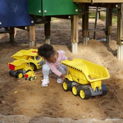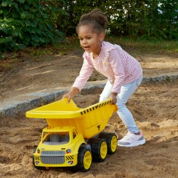 Mega Dumper Power Worker firmalt BIG on mänguasi aktiivsetele lastele. Väikeseid käsi silmas pidades on see kallur suurem kui kunagi varem ja ületab oma tohutu kalluriga kõik ootused. Sellega saab vedada igasugust lasti, olgu selleks liiv, vesi või muud mänguasjad.
