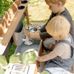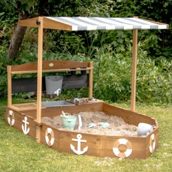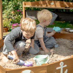 Astuge AXI puidust liivakastilaeva pardale! See muudab õues mängimise põnevaks mereseikluseks. Väike köök, mille pardal on valamu, lisab melule veelgi vaheldust. Liivakastil on ka riidest katus, mis pakub päikesepaistelistel suvepäevadel peavarju ja täiesti allalastuna toimib liivakasti kattena.