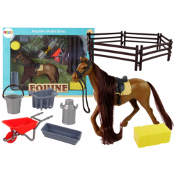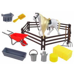 Hobuse kujukeste kammimine Horse Homestead Aksessuaarid Hobused tekitavad lastes rõõmu ja elevust. Oma loomast unistades soovivad nad innukalt teada saada, kus nad elavad ja mida söövad. Tutvustage ilusat hobust koos kõigi tema hooldamiseks vajalike tarvikutega. Pisike kolib maaelu maailma, hoolitseb hobuse eest ja õpib tundma tema vajadusi. Kaunis hobune täiendab kogu maailmast pärit hobuste kollektsiooni. Tallis mängimisest saab üks teie lapse lemmikmänge. See pakub palju tunde imelist lõbu, ergutab kujutlusvõimet ja käelisi oskusi, laseb fantaasia ohjad lahti ja liigub seikluste maailma. Komplekt koosneb pika lakaga kujukesest hobusest, mis sobib suurepäraselt kammimiseks ja punumiseks. Lisaks on komplektis igapäevaeluks ja talli korrashoidmiseks vajalikud tarvikud nagu käru ja reha. Kuid see pole veel kõik, peate hoolitsema selle eest, et hobusel oleks midagi süüa ja juua, selleks on vaja jootjaid ja heina. Spetsiaalne tara tähistab hobuste aediku koha. Mudelite suurused sobivad ideaalselt väikesele käele. Kujuke kordab tõetruult looma tegelikku välimust. Kõik elemendid on valmistatud kõrgeima kvaliteediga plaatinast. Komplekti elemendid: - hobune sadula ja valjadega - käru - hein - reha - hark - ämber - hari - toidu- ja jooginõu x3 - korpus Komplekt on kahes värvitoonis: - pruun hobune - valge hobune Palun andke müüjale sõnumis teada, millist värvi eelistate. Loomast saab teie nukkude lemmikkaaslane! Hobuse kujukese mõõdud: 20 cm x 15 cm x 5 cm Kasti mõõdud: 39 cm x 29 cm x 6 cm Mänguasjad sobivad üle 3-aastastele lastele. Kujukesed on CE-sertifikaadiga ja vastavad standardile EN 71. Need on pakendatud pappkarpi, mistõttu sobivad ideaalselt kingituseks.