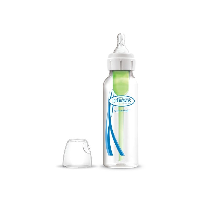 Dr. Browni kitsa Natural Flow® Options+™ lutipudeliga pole teie valikud kunagi varem nii head olnud. Lutipudelist aluseni tagab Options+™ pudel lapsele mugava toitmiskogemuse. Koolikutevastane ventilatsioonisüsteem on kliiniliselt tõestatud koolikute vähendamiseks. Vähendab röhitsusi, röhitsemist ja gaase. Säilitab paremini toitaineid rinnapiimas ja piimasegus. Aitab seedimisel kaasa hea une tagamiseks. Pakub imetamist toetavat voolukiirust. Iga lutt on loodud ühtlase voolu tagamiseks, nii et teie ja laps teate, mida oodata. Pehme silikoonist lutt aitab rinnaga toitval lapsel loomulikult rinnast haarata. Kasutage pudelit nii sisemise ventilatsioonisüsteemiga kui ka ilma. Sobib enamiku rinnapumpade jaoks. Nõudepesumasinas (ülemisel restil) pestav ja steriliseeritav. BPA-vaba ja alates 0m+.