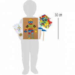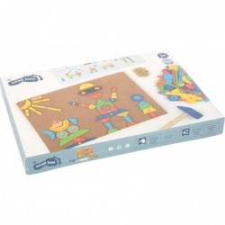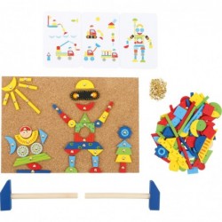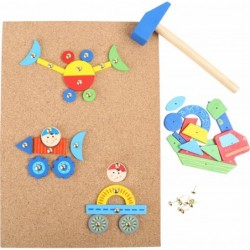 Kuulake, kes lööb! Elastne korkplaat, kaks väikest puidust haamrit, 100 väikest naela ja 126 värvilist puitdetaili annavad stardisignaali individuaalse pildi loomiseks. 6 pildimalli ja hoiukastiga! Siin pole kujutlusvõimel piire. Ükskõik, kas robot, rong või rakett on siin kõik võimalik. Kes veel ideid otsib, haarake vaid kuus pildisoovitust ja minge!