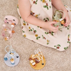 Puidust motoorne aas on suurepärane sensoorne mänguasi, mis võimaldab lastel arendada peenmotoorikat. Ajades helmeid läbi kõverate torude, peavad lapsed edu saavutamiseks sooritama sobivaid liigutusi. Nii õpivad lapsed, milliseid liigutusi sooritada, arendades samal ajal ka osavust ja täpsust. Puidust alusel on värviline pilt, mille külge on kinnitatud värvilised torud. Torudele on nööritud kümme kahes kujus värvilist helmest, mis kindlasti köidavad pisikeste tähelepanu.