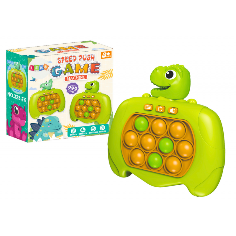 POP-IT ARTS MÄNGU DINOSAURUSKONSOOL Rohelise versiooniga Pop-It mäng dinosaurusega on ainulaadne arkaadmänguasi, mis pakub lõputut meelelahutust ja käeliste oskuste arendamist. Tänu uuenduslikule vormile ja interaktiivsetele valgusefektidele pakub mäng põnevaid elamusi, toetades samal ajal silma-käe koordinatsiooni ja keskendumist. Mängureeglid on lihtsad, kuid sõltuvust tekitavad – mängija ülesandeks on vajutada erinevates värvides ilmuvaid valgustatud eendeid. Kõik 999 taset pakuvad uusi väljakutseid ja ülesandeid, nii et mäng ei hakka kunagi igav! Mänguasja loomisel on silmas peetud liikuvust ja kasutusmugavust. Kerge ja kompaktne disain tähendab, et seda saab hõlpsasti kõikjale kaasa võtta – autosse, jalutuskäigule, seljakotti või kotti. Tänu sellele on mäng ideaalne viis lapse hõivamiseks reisil, kodus või järjekorras oodates. Mäng Pop-It Dinosaur on suurepärane kombinatsioon lõbususest ja harimisest, mis võimaldab harjutada reflekse, vaatlusoskusi ja loogilise mõtlemise oskusi. See on suurepärane kingiidee nii lastele kui ka täiskasvanutele! SPETSIFIKATSIOON: Materjal: Plastik Värvus: Roheline Kuju: Dinosaurus Tasemete arv: 999 Valgusefektid: Jah Mängu mõõdud: 13 cm x 13 cm x 5 cm Pakendi mõõdud: 15,5 cm x 15 cm x 6 cm KOMPLEKT SISU: Mäng Pop-It Dinosaur Originaalpakend