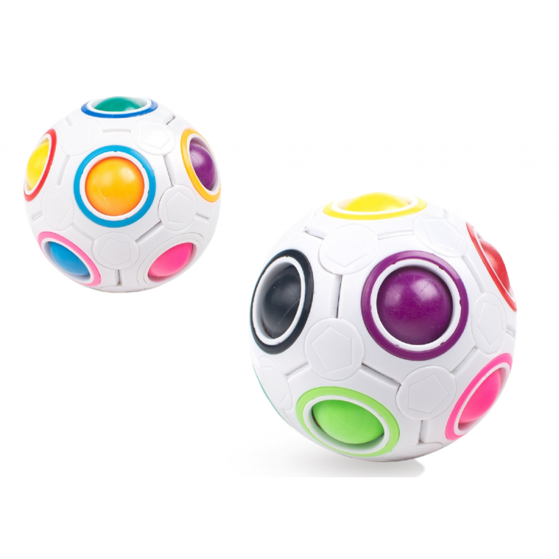 Magic Ball Puzzle Cube Magic Ball White pusle Arendab loogilist mõtlemist! Kuubiku maagilise pallimängu reeglid: vajutage esmalt juhuslikult pallile ja seejärel viige see teise auku. Tehke seda seni, kuni ükski pall pole oma värviga pesas. Nii saab pusle segamini ja mängimiseks valmis. Pallikesi liigutatakse, lükates neid õrnalt sissepoole ja seejärel veeretades neid valitud tühja auku, kuni pall hüppab uuesti väljapoole iseloomuliku klõpsuga. Mäng hõlmab pallide võimalikult kiiret tagasi viimist algasendisse, st nii, et iga pall läheks õiget värvi rõngaga auku. Suurepärane idee käelise osavuse, käte motoorsete oskuste ja loogilise mõtlemise treenimiseks. Palli mõõdud: 7 cm x 7 cm x 7 cm Ideaalne kingiidee. Mänguasi üle 6-aastastele lastele.