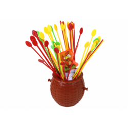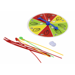 Ehitage pulkadega kanapesa Arkaad-peremäng Kogu perele mõeldud arkaadmäng pakub kõigile palju nalja. Ehita kanale pesa on mäng, mis nõuab täpsust, täpsust, kavalust ja õnne. Mängu eesmärk on ehitada värvilistest pulkadest kana Kikile pesa ja asetada munad turvaliselt pesa peale, et need ei kukuks ja oleksid ohutud. Võidab see, kes esimesena kõik munad ära kasutab ja kana Kiki turvaliselt asetab! Ettevalmistus: Asetage kõik värvilised pulgad pruuni korvi. Mängija hoiab kõiki pulgakesi pesitsusalal ja laseb seejärel kõik külgedele välja. Munad jaotatakse kõigi mängijate vahel võrdselt. Asetage kana Kiki pesapaiga kõrvale. Mängureeglid: Mängu alustab see, kes saab muna viimasena, keerates sihverplaadil kursorit. Nool näitab värvi ja mitu pulka tuleb horisontaalasendisse asetada, on mängija enda otsustada, kas asetada muna kohe või oodata oma munadele mugavamat olukorda. Joonistades näiteks punast ja 3 pulka, asetab mängija 3 pulka horisontaalasendisse ja 1 muna. Seejärel teeb käigu järgmine mängija. Komplekt sisaldab:- pruun korv kanale- noolega kilp- Kiki kana- 20 muna- 50 plastikust värvilist pulka Pakendi suurus: 27 cm x 26 cm x 6 cm Omab CE sertifikaati ja vastab EN71 standardile. Mõeldud üle 3-aastastele lastele.