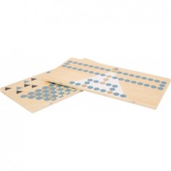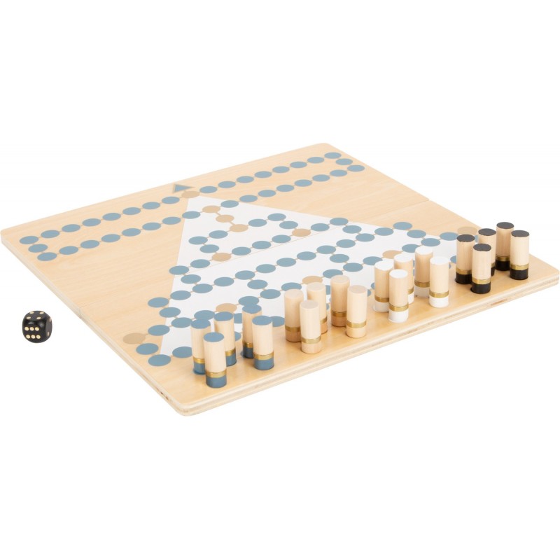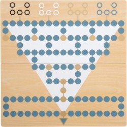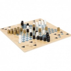 See kaks-ühes lauamäng veenab visuaalselt trendikate kuldsete aktsentidega, moodsa suitsusinisega kombineerituna lihtsa musta/valgega ja palju nähtavat puitu. Mängulaud, mille ühele küljele on trükitud klassikaline Halma ja teisele küljele Barricade, on valmistatud tugevast puidust ega paku mitte ainult topeltmängunaudingut – see on jagatud ka kaheks osaks ja seega ruumisäästlik hoiustamiskõlbulik! Sisseehitatud magnetid tagavad, et mängulaua pooled püsivad kindlalt koos. Kvaliteetse mängukastiga hoiustamiseks. Taktika on nõutud! Klassikalises lauamängus Barricade on eesmärk püstitada tõkkeid, visata vastased välja ja leida strateegiliselt parim tee väravani, kuigi kaasmängijad blokeerivad teed finišisse! Halmat, mida nimetatakse ka Hiina kabeks, on eriti lihtne õppida ja see on alati lõbus – olgu siis seltskondlikul ringil sõprade keskel või mugavalt perega. Varrekivid on kasutusel kahel korral ja neid kasutatakse ka barrikaadimängu barrikaadidena!