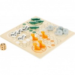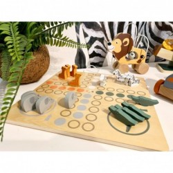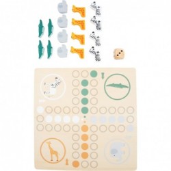 Safari tunne mängulaual! Selle puidust Ludo mänguga on eesmärk olla esimene inimene, kes saab oma savanniloomad "majja". Eriti suur täring näitab, mitu tühikut teie mängunupp võib edasi liikuda. Sebra, kaelkirjaku, krokodilli ja elevandi kujukesed on detailiderohked ja lastesõbraliku kujundusega. Lapsed õpivad mänguliselt stantsil olevate punktide arvuga lugema. See on trendika disaini ja kompaktse suurusega klassikaline Ludo mäng. See lõbus salongimäng õpetab lapsi õnnelike väikeste loomadega mängides võrdselt nii võidu kui ka kaotusega hakkama saama ning on seetõttu mängukastis kohustuslik!