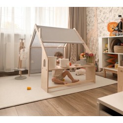 Looduslik puit ja hoolikas detailitäpsus muudavad maja sobivaks nii moodsasse kui ka klassikalisse interjööri. Pastelltoonides kangast varikatus lisab hubasust, meenutades muinasjutulist tipii telki.