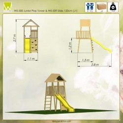 Varustatud 120 cm kõrguse platvormiga, ronimissein, rõdu, redel ja käepidemed, maandusankrud 2 tükki, liumägi 220 cm pikk.