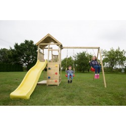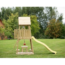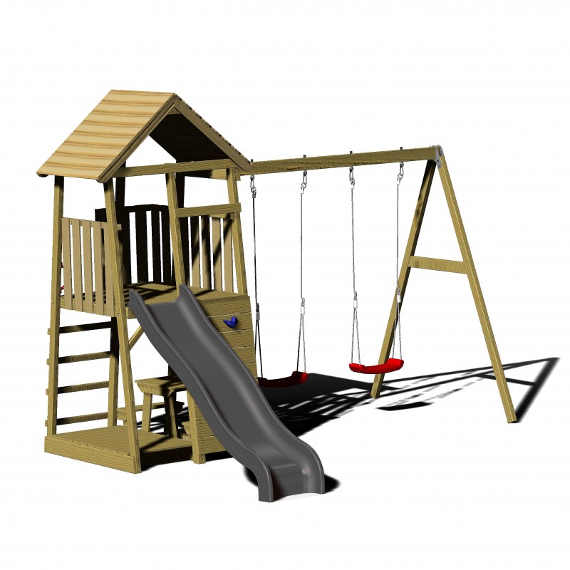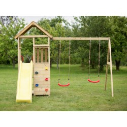 Mänguväljak koosneb: 120 cm kõrgune platvorm, ronimissein, rõdu, redel ja käepidemed, topeltkiik, piknikupink ja väike kaanega liivakast, 4-osalised kinnitusankrud, 220 cm pikkune liumägi.