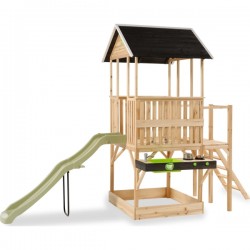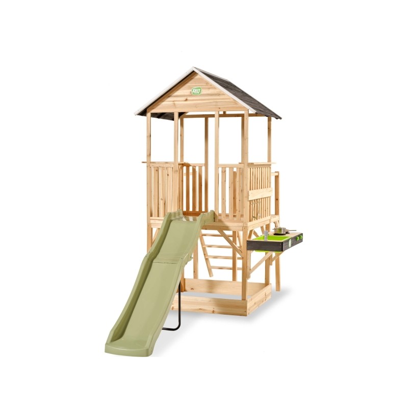 EXIT Panorama 550 puidust mängumaja liumäe, mudaköögi ja liivakastiga