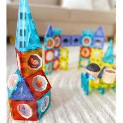 Magnetklotsid köidavad ja paeluvad teie last. Klotsid on kergesti ühendatavad, võimaldades teil luua hämmastavaid ehitisi, näiteks lossi. Lisaks klotsidele, kleebistele ja juhistele sisaldab komplekt kahte lastefiguuri. Konstruktsiooni enda ehitamine arendab teie lapse loogilist mõtlemist, kujutlusvõimet ja loovust ning aitab tal loomise ajal keskenduda. Klotsi paigutades õpib teie laps kujundeid ja värve ning arendab peenmotoorikat.