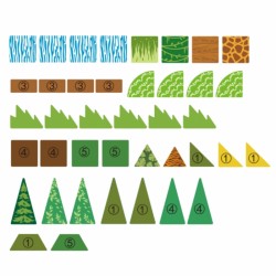 - 45 erineva kuju ja värviga magnetilist elementi, sealhulgas juga, kaar, põõsad ja puud. - Loomafiguurid: 2 x panda, leopard, hirv, krokodill.