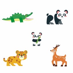 - Komplekti teema: haruldased loomad (panda, leopard, hirv, krokodill).