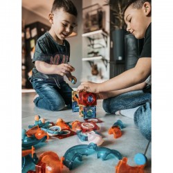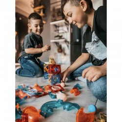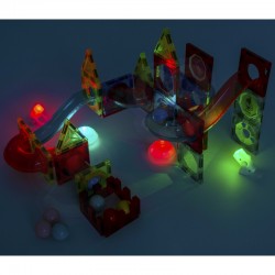 Magnetklotsid köidavad ja paeluvad teie last. Klotsid on kergesti ühendatavad ja nende abil saab luua imelisi liumägedega struktuure, näiteks rada, millel pall saab libiseda. Raja saab veelgi muljetavaldavama efekti saavutamiseks valgustada kaasasoleva taskulambiga ja laps saab seejärel jälgida, kuidas valgus liigub, mis arendab tema taju. Raja paigutamine nii, et pallid jõuaksid kergesti lõppu, arendab lapse loogilist mõtlemist, kujutlusvõimet ja loovust ning aitab tal konstruktsioonide ehitamisel keskenduda. Klotsi paigutades õpib laps kujundeid ja värve ning arendab peenmotoorikat.