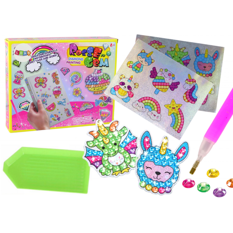 DIY teemantkleebiste komplekt Erinevate mustritega Värvilised kleebised Meie komplekt koos tarvikutega ainulaadsete kleebiste loomiseks on ideaalne pakkumine kõige pisematele. See uuenduslik tikkimistehnika võimaldab luua kauneid pilte, kleepides komplekti kuuluvatele armsate motiividega kleebistele väikesed teemandid. Need käsitsi valmistatud kaunistused ei tõmba mitte ainult kõige pisemate tähelepanu, vaid on ka suurepärane idee vihikute, seljakottide, pliiatsikarpide ja muude igapäevaste esemete kaunistamiseks. Neid piirab ainult teie enda kujutlusvõime! Teostuse lihtsus muudab teemantidega mängimise mitte ainult ajaveetmisviisiks, vaid ka suurepäraseks võimaluseks lastele tunda end väikeste kunstnikena. Lisaks arendab see loominguline meelelahutus kujutlusvõimet, loovust ning treenib käe-silma koordinatsiooni. Alustage koos oma kunstilist teekonda ja avastage meie lastele mõeldud kleebisetarvikute komplektiga loomisrõõm. Kaasas: - alus teemantide jaoks - spetsiaalne pliiats 7 värvi teemantide liimimiseks 2x kleebistega šabloonid Pakendi suurus: 25cm x 20cm x 5cm Omab CE sertifikaati ja vastab EN71 standardile. Mõeldud üle 6-aastastele lastele