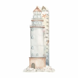 Matist fooliumist lõigatud trükitud seinakleebis tuletorni motiiviga.