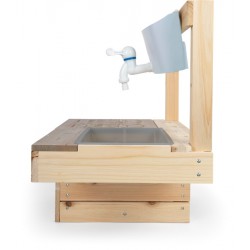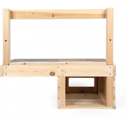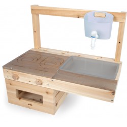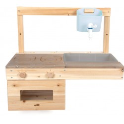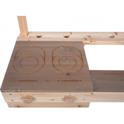 Stabiilne ja ruumisäästlik õuemänguköök, mida saab üles riputada ja mis võimaldab lastel loominguliselt süüa teha ja mudas sulistada! Kattekihiga töötasapind moodustab elegantse kontrasti ja annab moodsa ilme. Pikaajalise kasutusea tagamiseks tuleks töötlemata puitu kaitsta puidukaitsevahendiga. Seinale paigaldamise tarvikud ei kuulu komplekti.
