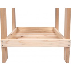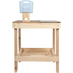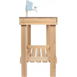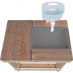 Kompaktne täispuidust mudaköök, mis sobib kasutamiseks ka mängulauana – ideaalne väikestesse aedadesse või terrassidele. Ideaalne tootevaliku laiendamiseks õuemänguasjade, rollimängude ja sensoorsete mänguasjade valdkonnas.