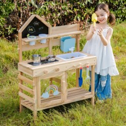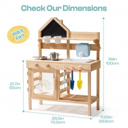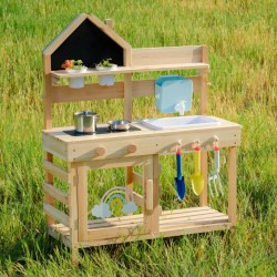 Eelista uurimist – istutustopsid ja -tööriistad julgustavad väikeseid aednikke külvama seemneid, kastma idusid ja jälgima kasvu – segades sensoorse mullamängu praktilise õppimisega. See kombinatsioon arendab vastutustunnet, peenmotoorikat ja uudishimu looduse vastu. Soojad hooldusnipid - Et õues kaua aega veeta ja väliköök heas seisukorras püsiks, soovitame seda õrnalt niiske lapiga puhastada. Kaitsekihi pealekandmine üks või kaks korda aastas aitab vältida kuivamist ja pragunemist. Kui seda ei kasutata, hoidke seda siseruumides või katke veekindla presendiga, et kaitsta seda vihma eest.