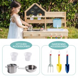 Täielik tarvikute komplekt – sisaldab kahte metallpotti, kolme värvilist aiatööriista, kahte istutustopsi ja majakujulist tahvlit – kõike, mida lapsed vajavad toiduvalmistamiseks, istutamiseks ja menüüde loomiseks. Mänguvalmis tarvikud muudavad kokkupaneku kiireks ja kutsuvad esile lõputut õues lõbutsemist.