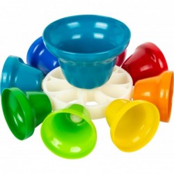 Tee muusikat värvide järgi! See kaheksa värvikoodiga kellakellaga kellade karussell annab dünaamika lapse varases muusikalises hariduses. C, D, E, F, G, A, B ja C nootidele häälestatud kellaratta saab kas alusele seada või käes hoida. Vasaraga saab mängida üksikuid toone - ja kes tahab tervet skaalat mängida, võib hoida vasarat vastu kellasid, kuni kellade ring pöörleb. Sealhulgas skoor kaheksa erineva lauluga. Kaasas olev kaheksa lauluga partituur juhendab noori muusikuid ning on tänu värvikoodile lihtne algajatele ja väikelastele. See soodustab rütmiliste, akustiliste ja koordinatsioonioskuste arengut. See sobib suurepäraselt nootide äratundmiseks ja eristamiseks! Noodid sisaldavad selliseid laule nagu "Old MacDonald Had a Farm", "Jingle Bells" või "Twinkle, Twinkle Little Star". Õrnate helide ja valjude kontsertide tegemisel soodustab see kellakarussell loovuse arengut ja paneb aluse varajasele muusikalisele haridusele. Ideaalne kasutamiseks rühmas lasteaias, algkoolis või lastetoas.