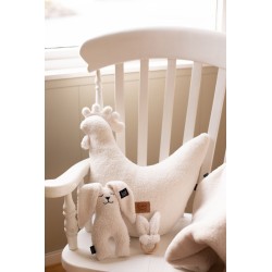 See erakordne sensoorne hambuline on loodud kõige nooremaid silmas pidades. Hambahammas on rõngakujuline ja valmistatud keskkonnasõbralikust vahtrapuust, tagades loomulikkuse ja ohutuse. Sõrmuse külge on kinnitatud pehmest ja kohevast Teddy materjalist õmmeldud armas jänkukõrvade kujuline rihm, mis on meeldiv puudutusele ja sobib väikestele kätele haaramiseks. Ühes kõrvas on kortsuv foolium, mis stimuleerib lapse meeli, pakkudes mängu ajal täiendavaid stiimuleid. Hambahammas on ideaalne hammaste tuleku ajal, tuues leevendust valusatele igemetele ning toimib ka sensoorse mänguasjana, mis arendab koordinatsiooni ja käelisi oskusi. Lisainfo: Suurus: üks suurus