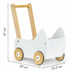 Vanker on täielikult puidust ja kaetud lapsele ohutu värviga. Stabiilsel konstruktsioonil puuduvad teravad servad ja ohtlikud elemendid, nii et te ei pea mängides muretsema oma lapse ohutuse pärast. Ratastel olev libisemisvastane lint kaitseb jalutuskäru maapinnal libisemise eest ja kaitseb põrandat kriimustuste eest.