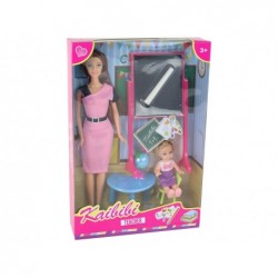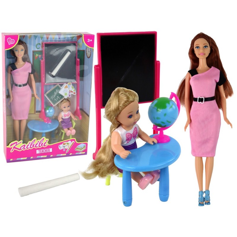 Õpetajanukk õpilaskooli aksessuaaridega Suur nukk näitab elegantses stiilis õpetajat. Õpetajal on pikad pruunid juuksed, mida saab kujundada erinevateks soenguteks. Ta kannab lillat kleiti, millel on must vöö, mis annab talle elegantse välimuse. Tema jalas on sinised kõrged elegantsed kingad. Õpetaja on maalitud õrna meigiga, mis lisab talle võlu. Väike nukk kujutab koolitüdrukut. Õpilasel on seljas võluv valge ja lilla kaarega kleit. Jalas on roosad kingad. Õpilasel on pikad blondid juuksed, mida saab kinnitada ja kammida. Komplekti kuulub kriiditahvel, mida kasutatakse õppimiseks ja mida saab kasutada mängu ajal.Komplektis on ka laud ja tool, millel õpetaja ja õpilane saavad istuda. Maakera on veel üks komplekti element, mis võimaldab teil õppida geograafiat ja avastada maailma. See mänguasjakomplekt võimaldab loovat mängu, kus laps saab läbi mängida erinevaid õppimise ja kooliga seotud stsenaariume. Õpetajate ja õpilaste nukud ja aksessuaarid võimaldavad luua realistlikke õppesituatsioone ja arendada laste kujutlusvõimet. Komplekti sisu: - õpetaja nukk - koolitüdruku nukk - tahvel - kriit - maakera - laud - tool - originaalpakend Õpetajanuku mõõdud: 31 cm x 7 cm Õpilasnuku mõõdud: 11,5 cm x 3 cm Pakendi suurus : 33 cm x 22 cm x 6 cm Omab CE sertifikaati ja vastab EN7 standardile. Mänguasi on mõeldud üle 3-aastastele lastele.