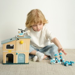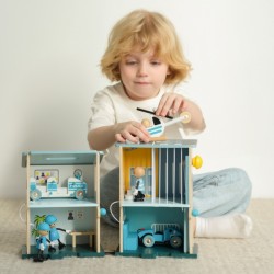 Classic Worldi 12-osaline politseijaoskonna komplekt on terviklik mänguasi, mis võimaldab teie lapsel saada vapraks politseinikuks ja hoida linnas korda! See naturaalsest puidust valmistatud komplekt avaldab muljet oma kvaliteedi ja detailitäpsusega. Politseijaoskond on disainitud Pariisis, mis tagab selle ainulaadse stiili ja funktsionaalsuse. See koosneb kahest hoonest, ühes on kang ja teises ülekuulamisruum. Tänu erinevatele konfiguratsioonidele ja avatud ustele saavad lapsed elemente vabalt manipuleerida, et luua oma stsenaariume. See mänguasi sobib ideaalselt kujutlusvõime, keeleoskuse ja peenmotoorika arendamiseks, pakkudes tundideks loomingulist mängu.