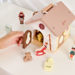 Puidust hariv lukkudega maja on sensoorne mänguasi, mis ergutab teie pisikest põnevat uurimist! Sellel võluval CLASSIC WORLDi majal on neli ust, millest igaühel on nutikas lukustusmehhanism. Mänguasja idee seisneb selles, et õige võtmekuju sobiks sobiva uksega (sama avausega). Sees ootavad uurijat värvilised rõõmsate illustratsioonidega klotsid, mis kujutavad muuhulgas väikest kaisukaru ja sünnipäevakingitust, mis sobivad ideaalselt mänguasja teemaga. Iga ukse avamine ja sulgemine on suurepärane viis peenmotoorika, osavuse ja loogilise mõtlemise arendamiseks. Vastupidavast ja ohutust puidust valmistatud mänguasi on loodud avastamisrõõmu ja kujutlusvõimet tekitama 18 kuu vanustel ja vanematel lastel.