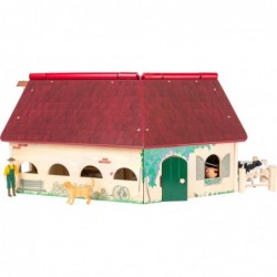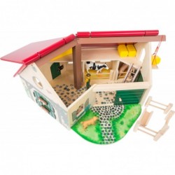 Moooh - Kõrgetasemeline taluelu! See suur mängumaailm, mis on valmistatud FSC� 100% sertifitseeritud puidust, täidab noorte põllumeeste kõik soovid. Ja siin peitub eriline võlu: talu stabiilne puitkonstruktsioon on paigutatud tähelepanuväärse nurga all ja varustatud avatava katusega, mis võimaldab taluga lihtsalt ja mugavalt mängida. Lapsesõbraliku disainiga loomad panevad laste silmad tõeliselt särama. Must-valgekirju lehm ja roosa notsu leiavad oma hubase koha kahes boksis lükandustega tallis. Talukoer hoiab kõigel silma peal, kuni talunik heinaaed korda saab. Ta kasutab teisaldatavat tõstukit heina- ja põhupallide kuhjamiseks ikka ja jälle, et kõik loomad saaksid garanteeritud oma osa. Selle talu armsalt detailne kujundus julgustab lapsi realistlikke rollimänge tegema – ja nende fantaasiate piiriks on taevas. Talu poolitatud uksed pakuvad nii palju ruumi, et traktor (toote nr 11006) saab hõlpsasti sisse sõita ja parkida. Talu ümbruses on noortele maadeuurijatele avastamiseks palju peeneid maalitud detaile, nagu lilled, pink, kastekann, linnupesa ja isegi hiir. See on peaaegu nagu päris talus! Siia kuuluvad koer, lehm, siga, talunik ja heinapallid.