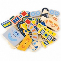 VIGA korgipüstol on ideaalne laud noorele ehitajale. Komplekt sisaldab 45 puidust püstolit, korgitahvlit, puidust haamrit ja viit kaarti, millel on kujutatud 10 robotit, mida saab klotsidest kokku panna. Igal puidust tükil on auk, mis võimaldab lastel kasutada nööpnõelu, et lüüa tahvlile mis tahes kuju. Lapsed saavad oma kujutlusvõime ja loovuse abil luua oma seadeid. Korgipüstolid on mänguasjad, mis toetavad käeliste oskuste, loogilise mõtlemise ja keskendumisvõime arengut. Tükidel on ümarad servad, mis muudab need lastele 100% ohutuks.