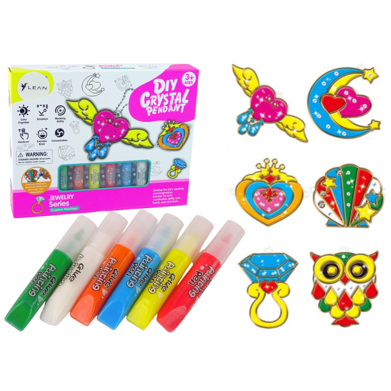 Vitraažvärvimine Ripatsid Tahkevärv Ehted 6 tk. Tahkuvate värvidega värvimine on ideaalne vaba aja tegevus, et ennast väljendada. See äratab teis kunstniku. See on tunde lõbus ning avaldab suurt mõju loovusele ja kujutlusvõimele. Iga projekt on teie otsustada, värvide valik. Loote oma seljakotti kaunid ripatsid, aknapuud, võtmehoidjad. Komplekti kuuluvaid ripatseid saad kasutada ripatsina, võtmehoidjana, akna- või seljakotiripatsina ning imekauni käevõruna. Kuidas lõbu alustada? Valige oma lemmikvärv, värvige, laske kuivada. Kui töö ei meeldi, kraabi pinnalt lihtsalt värv maha, see tuleb kergesti maha ja värvi uuesti. Geelpliiatsid ei määrdu, tulevad kergesti maha, lihtsalt pese seebiga. See on ideaalne kingitus sünnipäevaks või mõneks muuks sündmuseks. Komplekt on sertifitseeritud ja ohutu kõige väiksematele lastele. Komplekti elemendid: - 6 värvilise geelvärvi pliiatsi komplekt - 6 läbipaistvat ripatsit Ripatsi mõõdud: 6 cm x 6 cm x 1 cm Karbi mõõdud: 25 cm x 20 cm x 4 cm Mänguasi on mõeldud üle 3-aastastele lastele. Väikeste osade tõttu on see mängimiseks soovitatav täiskasvanu järelevalve all.