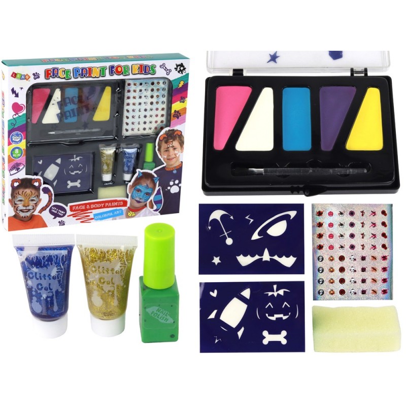 Lastele mõeldud näo- ja küünevärvide komplekt Esitleme põneva näo- ja küünemaalimise komplekti, mis sobib suurepäraselt väikestele kunstnikele ja loomingulise lõbu austajatele! See komplekt pakub unustamatuid rõõmuhetki ja loomingulisi katsetusi. Komplektis on viis värvivärvi: roosa, valge, sinine, lilla ja kollane, võimaldades luua erinevaid ja värvilisi mustreid. Kaasasolev pintsel muudab täpse värvimise lihtsamaks, võimaldades luua kauneid detaile. Kaks kuldsetes ja tumesinistes toonides littergeeli lisavad suurejoonelist sära ja annavad maalitud mustritele ainulaadse iseloomu. Isekleepuv šabloon on suurepärane tööriist, mis aitab teil hõlpsalt luua keerukaid mustreid. Lisaks on komplektis küünelakk, küünekleebised ja svamm, mis võimaldab laiendada oma loovust ka muudesse stiilivaldkondadesse. Lapsed saavad hõlpsalt katsetada näomaalinguid ja küünte kunsti, arendades oma kujutlusvõimet ja kunstilisi oskusi. See näo- ja küünemaalingute komplekt ei ole ainult mänguasi, vaid ka tööriist, mis arendab laste loovust, täpsust ja käelisi oskusi. Ideaalne sünnipäevadeks, temaatilisteks pidudeks või pärastlõunaseks loominguliseks maalisessiooniks. Pakendi suurus: 27cm x 24cm x 3,5cm Sellel on CE sertifikaat ja see vastab EN71 standardile. Mõeldud üle 8-aastastele lastele.