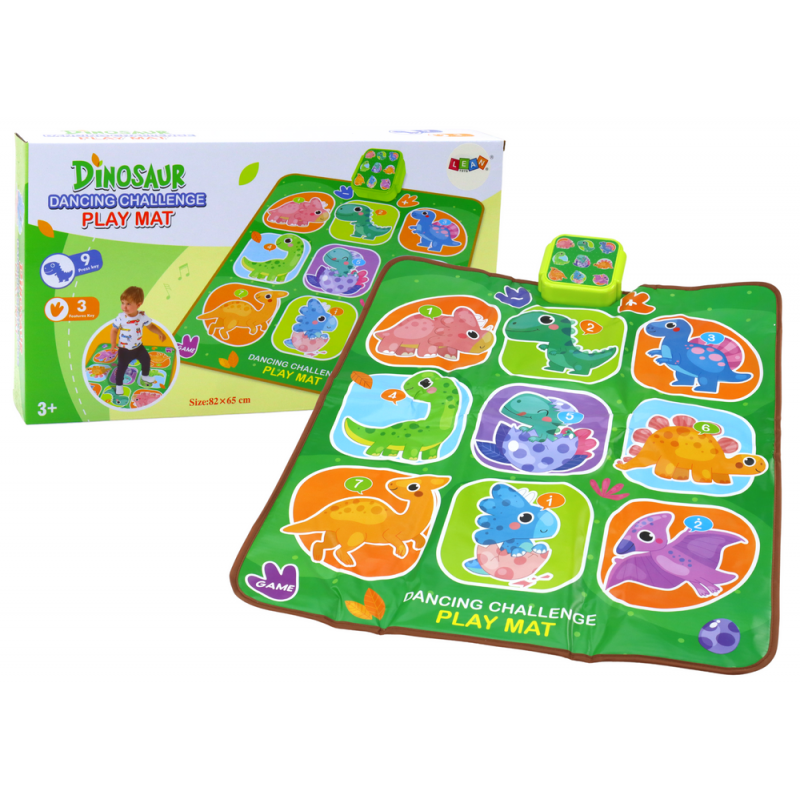 Interaktiivne matt Dinosaurs Dance Challenge 5 lõbusat režiimi Dinosaurs - Dance Challenge tantsumatt on erakordne mänguasi, mis viib lapsed rõõmsate dinosauruste maailma, pakkudes samal ajal interaktiivset ja stimuleerivat meelelahutust. Värviliste dinosauruste motiividega kaunistatud matt ei tõmba mitte ainult tähelepanu, vaid ergutab ka kujutlusvõimet ja julgustab mängus aktiivselt osalema. Mäng põhineb tantsumatil väljade rütmilisel vajutamisel vastavalt juhtpaneelil kuvatavatele numbritele. Komplekt pakub kuni 5 erinevat mängurežiimi, millest igaüks pakub ainulaadse väljakutse ja kogemuse. Režiimides 1 kuni 3 peab laps matil valgustatud väljadele kiiresti reageerima, vajutades neid muusika rütmis. Iga ring kestab umbes minuti ja raskusaste tõuseb järk-järgult, mis muudab mängu põnevaks ja motiveerivaks. Mode 4 on kombinatsioon tantsust ja meloodilisest mängust. Matt valib juhuslikult 4 meloodiat, mille fragmente tuleb enne väljalülitumist vastavatele väljadele vajutades mängida. See nõuab kiiret mõtlemist ja täpseid reaktsioone, mis arendab nii muusikalisi oskusi kui ka motoorset koordinatsiooni. Režiimis 5 muutub matt tõeliseks klaveriks, kus iga nupp vastab konkreetsele noodile. Laps saab vabalt katsetada, luues oma meloodiaid ja harmooniaid, mis aitab arendada loovust ja muusikalist meelt. See interaktiivne matt ei paku mitte ainult meelelahutust, vaid on ka suurepärane vahend teie lapse arenguks. See toetab motoorsete koordinatsioonide, reflekside, muusikaliste oskuste ja keskendumisvõime arengut. See on unustamatu seiklus, mis õpetab ja lõbustab samal ajal! Matt töötab 3x AA patareidega, mis ei kuulu komplekti. Mati mõõdud: 82cm x 65cm Pakendi suurus: 40,5cm x 22,5cm x 7,5cm Sellel on CE sertifikaat ja see vastab EN71 standardile. Mõeldud üle 3-aastastele lastele.
