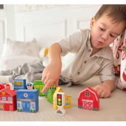 Kujunda oma linn selle ainulaadse Tooky Toy puidust kujukeste komplektiga! See komplekt sisaldab 21 hoolikalt valmistatud detaili, mis avavad teie lapsele lõputult võimalusi ainulaadsete lugude loomiseks. Elegantse puidust karbi sees peitub terve mikrokosmos – tuletõrjejaamast kooli ja haigla kaudu hubaste suvilate ja liiklusmärkideni. Iga hoone on värvitud ohutute, mittetoksiliste värvidega ja kaunistatud erksate värvidega, mis köidavad koheselt noorte arhitektide tähelepanu. See pole lihtsalt mänguasi – see on platvorm loovuse arendamiseks, kus lapsed saavad ehitada, korraldada ja luua oma mängustsenaariume, kas üksi või sõpradega.