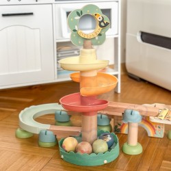 - Värviline pallirada paljude keerdudega, mis tutvustab teie lapsele liikumise ja gravitatsiooni põnevat maailma