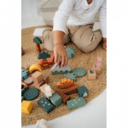 Rekonstrueerige dinosauruste eelajalooline maailm! Kui olete need 100% FSC-sertifikaadiga puidust ehitusplokid lahti pakkinud, võtavad dinosaurused lasteaia üle. Sellel ehitusplokkide komplektil on suur valik erineva kujuga ja disainitud puidust ehitusplokke. Lisaks värvilistele tükkidele ja naturaalsetele värvimata puidutükkidele sisaldab see terviklik komplekt kuut dinosauruse kujukest, kahte dinosaurusemuna ja klotse, millel on illustratsioonid eelajaloolistest mustritest, taimedest ja lehtedest. Lisaks lahedatele diinodele on selle 50-osalise ehitusplokkide komplekti tipphetkedeks kaheosaline vulkaan, puud ja puidust päike, mis inspireerib loomemängu ajal kujutlusvõimet ja julgustab lugusid jutustama. Ehitamisel ja ladumisel pole laste loovusel piire. Plokk ploki vastu – lapsed saavad konta eluruume T-Rexile, stegosaurusele, triceratopsile ja nende sõpradele! Tootesarja "Dino" mänguasjade teemaks on põnevad eelajaloolised olendid, kes köidavad igas vanuses inimeste tähelepanu. Need puidust mänguasjad edendavad motoorsete oskuste arengut, inspireerivad laste loovust ja kujutlusvõimet ning julgustavad lapsi looduse ja nende iidsete hiiglaste ajaloo kohta rohkem teada saama.
