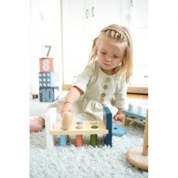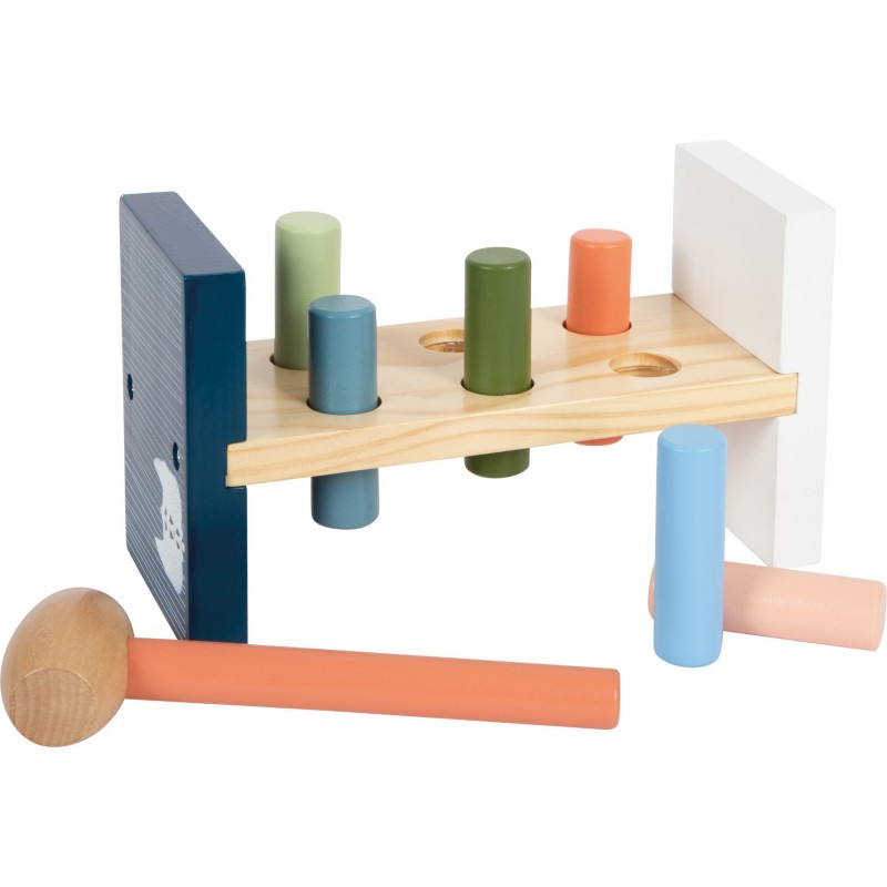 Mängige ja lõbutsege haamri ja haamripingiga! See FSC 100% sertifitseeritud puidust valmistatud haamripink on kõigi noorte motoorsete oskuste professionaalide jaoks hädavajalik. Eesmärk on puusilindrid haamri abil läbi vasardamispingi vasardada. Haameraukudes olevad kummirõngad hoiavad postid kindlalt paigal, samal ajal kui lapsed panevad proovile oma löögitäpsuse. Kui kõik postid on pingist läbi löödud, saab pingi lihtsalt ümber lükata, et lõbu saaks otsast alata. Ja siin on tipphetk: jääkaru illustratsioon ja selle peegeldus küljel avaldab pinki tagurpidi pöörates endiselt sama efekti. See on ajatu motoorsete tegevuste klassika, mis ühendab õppimise lõbususega ning treenib osavust, käe-silma koordinatsiooni ja motoorseid oskusi. Pingi ja haamri meeldiv tunne ning nähtav puitmaterjal koos moodsate värvide ja kvaliteetsete illustratsioonidega muudavad selle arktilise motoorsete tegevuste mänguasja lasteaias tõeliseks pilgupüüdjaks!